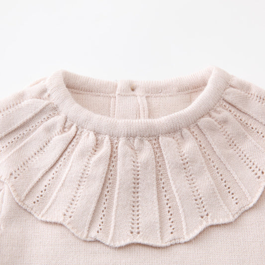 Autumn Design Baby Girls Solid Color Long Sleeves Hollow Out Ruffle Collar Knitted Onesies