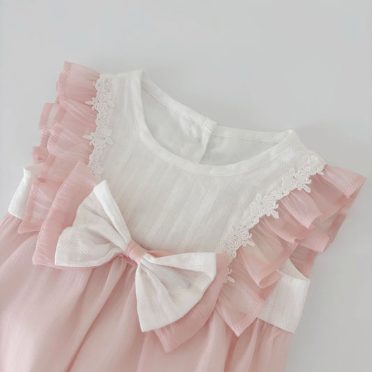 Summer Arrival Baby Girls Cute Apricot Fly Sleeves Flowers Pattern Tulle Patchwork Onesies