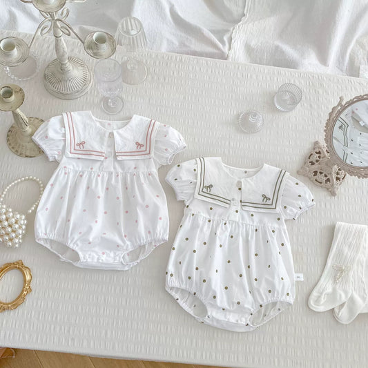 Summer Arrival Baby Girls Cute Short Sleeves Crew Neck Dots Pattern Onesies