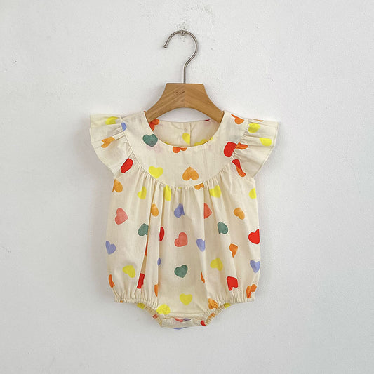 Summer Girls Simple Colorful Hearts Pattern Fly Sleeves Onesies and Girls’ Dress – Princess Sister Matching Set