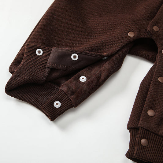 Baby Solid Color Quarter Button Design Lapel Knitted College Style Rompers