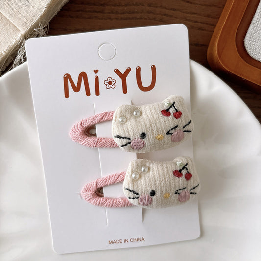 Collection of 2 Versatile Cute Kitty Embroidered Hair Clips