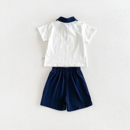 Summer Baby Kids Boys Short Sleeves Polo Shirt and Plain Shorts Clothing Set