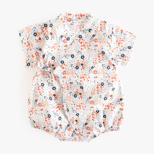 Recién llegado de verano, mono unisex para dormir con cuello en V y mangas cortas con estampado floral para bebé