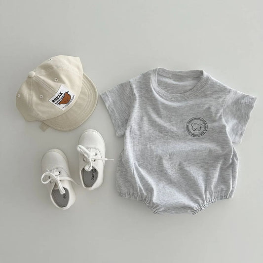 Summer Arrival Baby Unisex Cartoon Pattern Short Sleeves Onesies and Hat