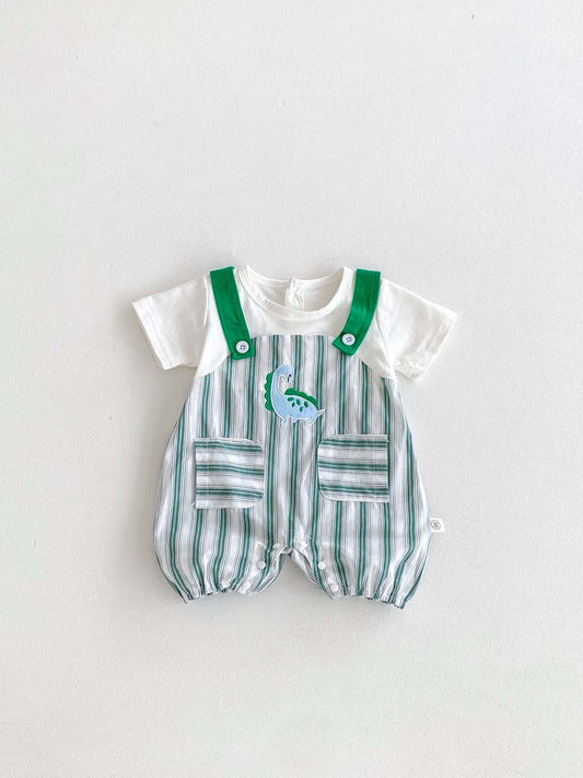 Summer Arrival Baby Unisex Casual Thin Striped Pattern Short Sleeves Onesies