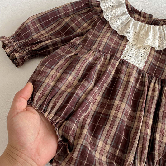 Autumn Arrival Baby Girls Long Sleeves Plaid Pattern Vintage Onesies