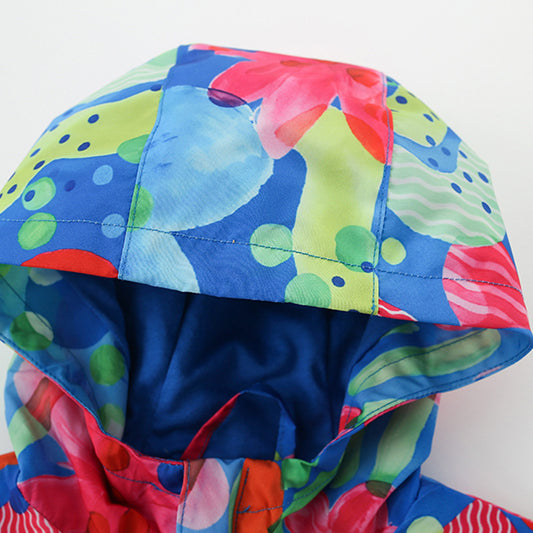 Arrival European and American Style Girls’ Hooded Zip-up Colorful Flowers Pattern Coat with Long Sleeves
