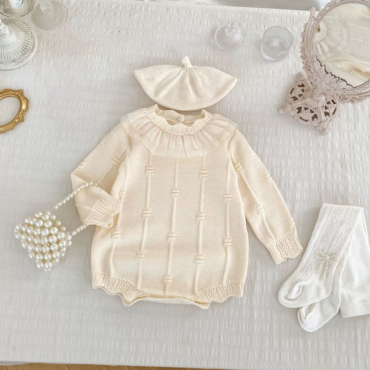 Autumn Arrival Baby Girls Knitted Long Sleeves Striped Jacquard Pattern Onesies