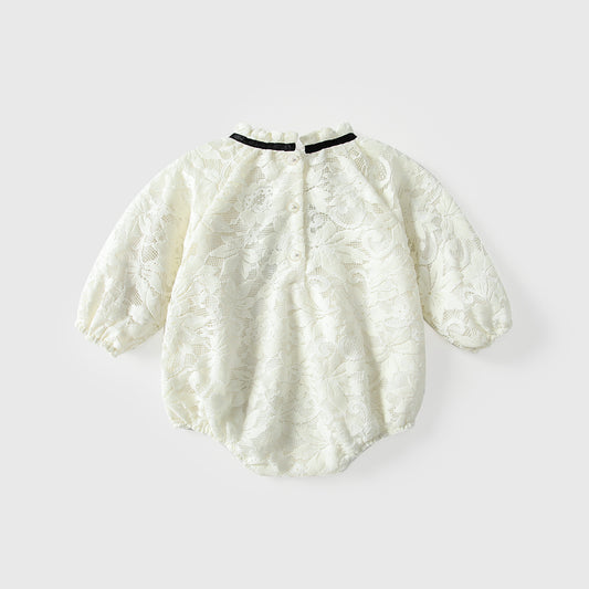 Arrival Autumn Baby Girls Lace and Flowers Long Sleeves Beige Onesies