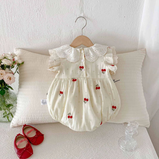 Summer Arrival Baby Girls Cute Fly Sleeves Cherry Embroidered Onesies