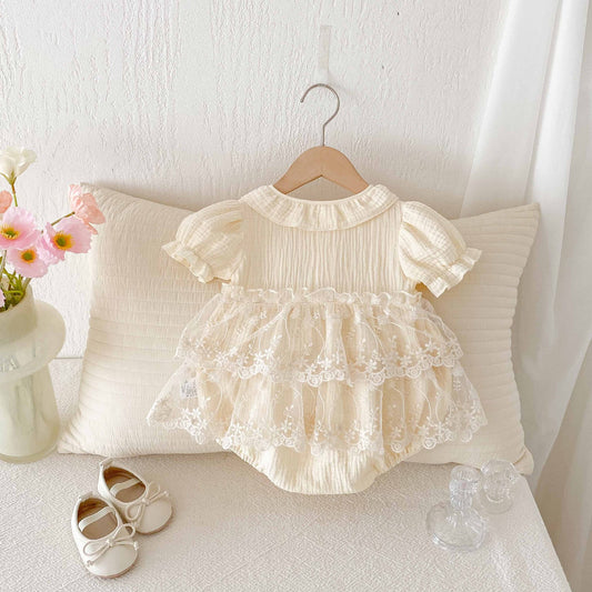 Summer Arrival Baby Girls Hollow-out Pattern Onesies Bodysuits with Collar