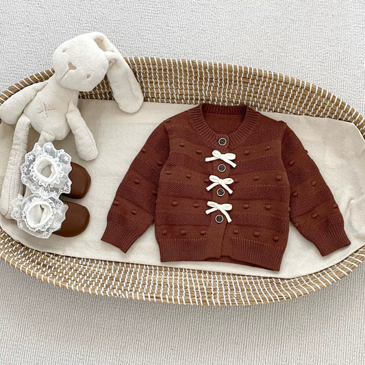 Autumn Arrival Baby Kids Girls Color Patchwork Long Sleeves Butterfly-bows Decorated Cardigan