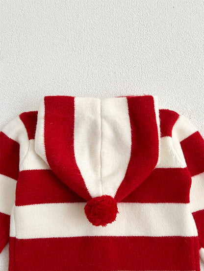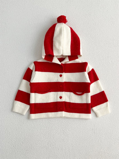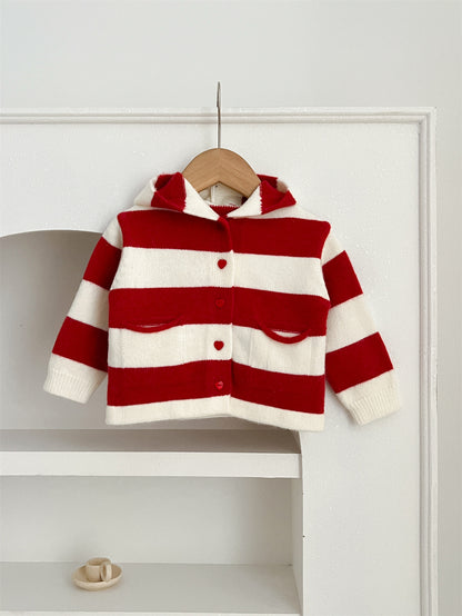 Arrival Baby Kids Girls Striped Color Patchwork Single Breasted Knitwear Hoodie
