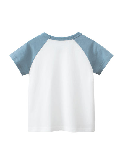 Boys’ Cartoon Animals Print Color Patchwork T-Shirt In European And American Style