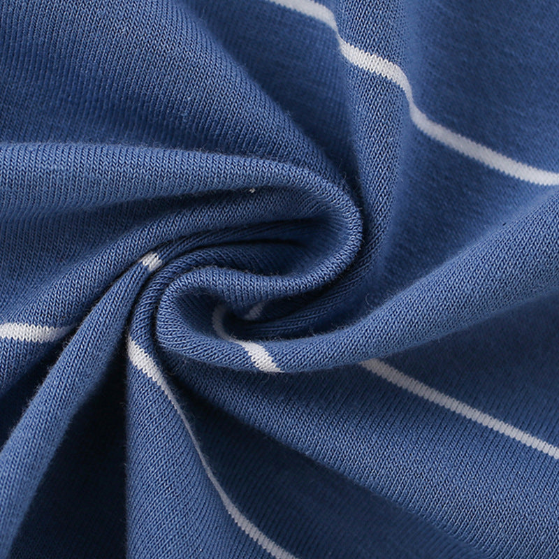 This boys' short-sleeve T-shirt features a charming dinosaur cartoon pattern combined with classic stripes, embodying European and American summer style. Crafted for comfort and breathability, it ensures ease of movement and keeps your child cool during warm days. Its playful yet refined design makes it an ideal choice for casual outings or everyday wear.