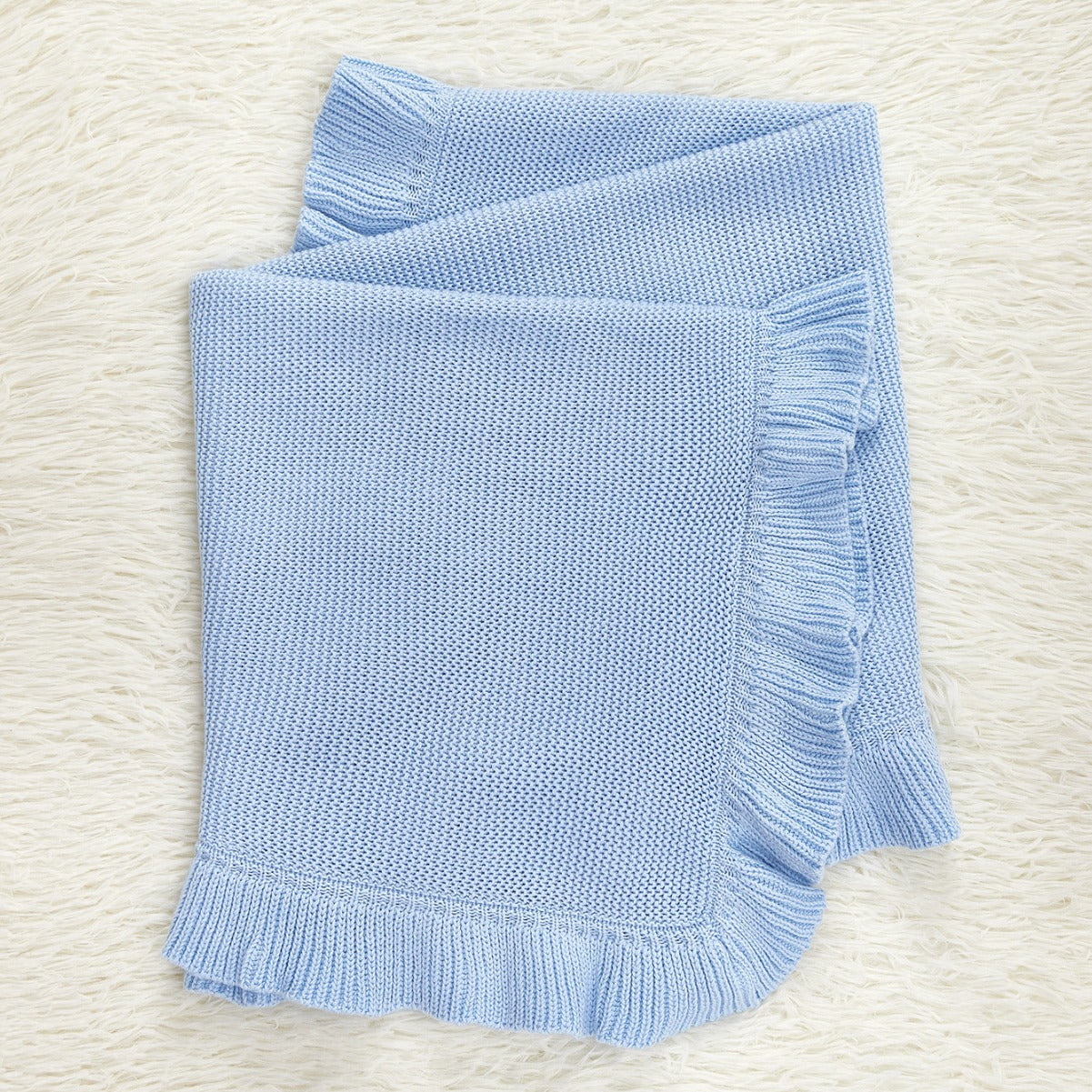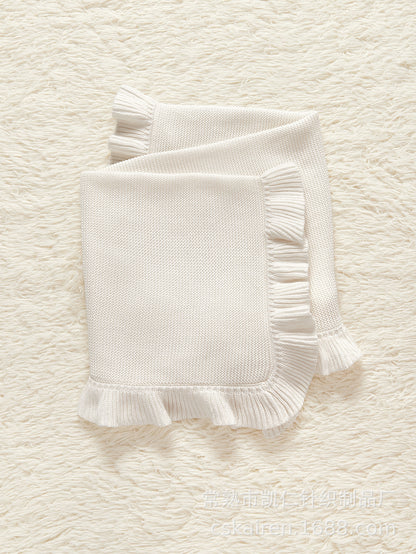Arrival Knitted Baby Blanket With Ruffle Trim Design: Solid Color Pure Cotton Collection For All Seasons