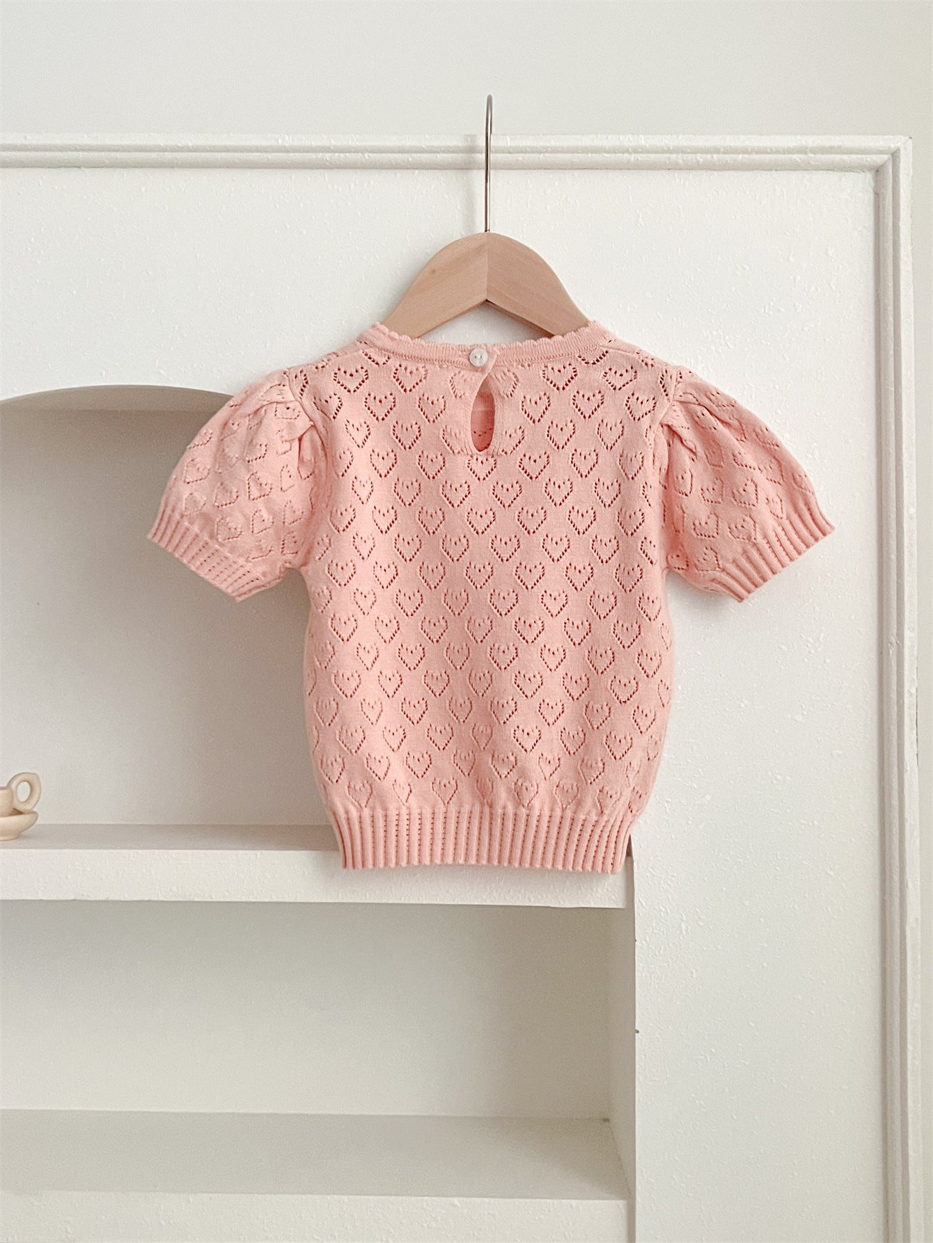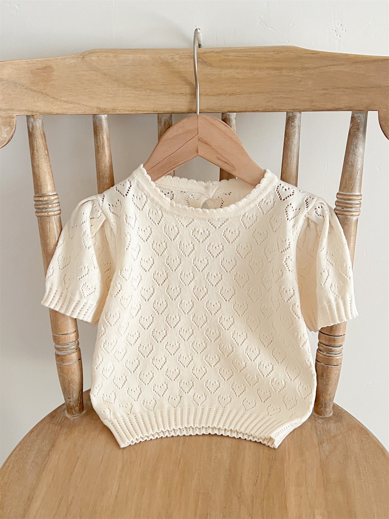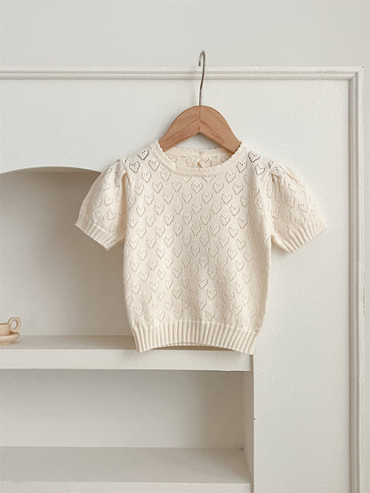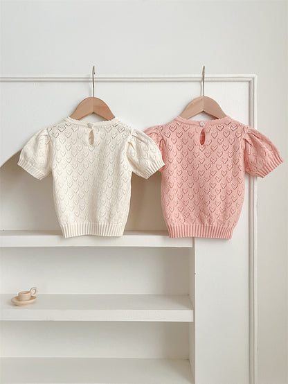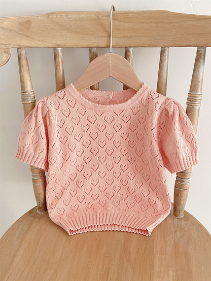 Arrival Summer Baby Kids Girls Knit Hollow Out Heart Pattern Short Sleeves Top
