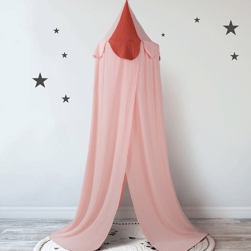 Elevate your child’s bedroom with the Nordic Princess Dreamy Bed Canopy, crafted from pure cotton double-layered gauze for a soft, breathable feel. Its elegant round-top design creates a charming retreat while effectively blocking light and keeping mosquitoes at bay. This stylish, functional canopy offers a serene and cozy sleeping environment, merging comfort with refined aesthetics.