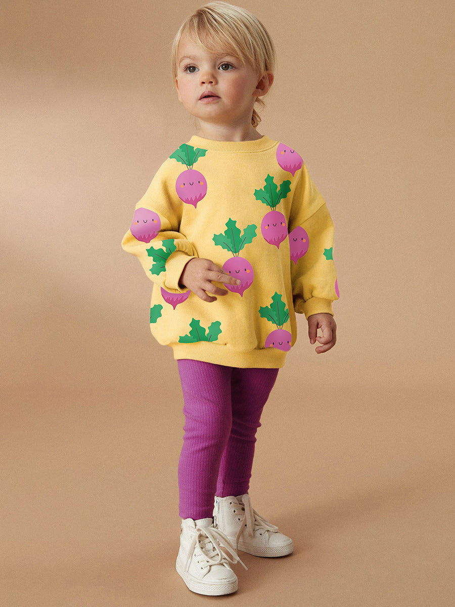 Dress your little one in this playful Spring and Autumn girls' clothing set featuring a charming turnip cartoon pattern. The long-sleeve top and matching pants offer cozy comfort perfect for cooler days, while the adorable design adds a fun touch to everyday wear. Ideal for keeping active kids both warm and stylish during seasonal transitions.