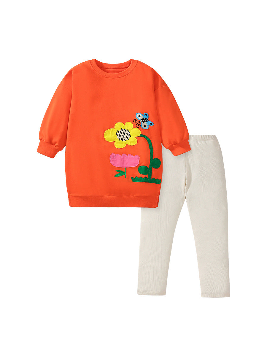 Spring And Autumn Girls Flower, Bee Pattern Top Sweatshirt And Solid Color Pants
