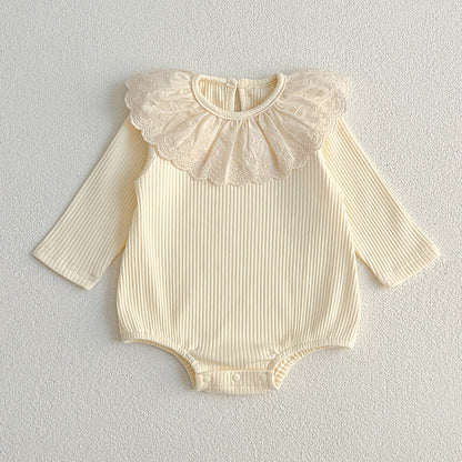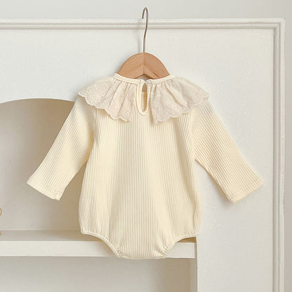 Spring Arrival Baby Solid Color Long Sleeves bodysuit For Girls With Hollow Out Collar