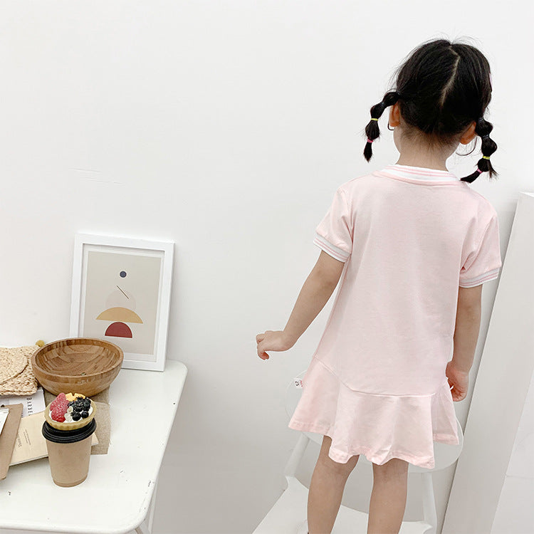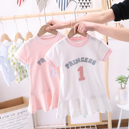 Summer Baby Girls Hot Selling Short Sleeves Crew Neck Sport Design Letters Pattern Dress