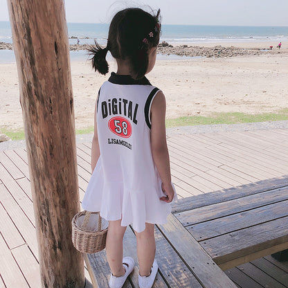 Summer Baby Girls Hot Selling Sleeveless Turndown Collar Sport Design Letters Print Dress