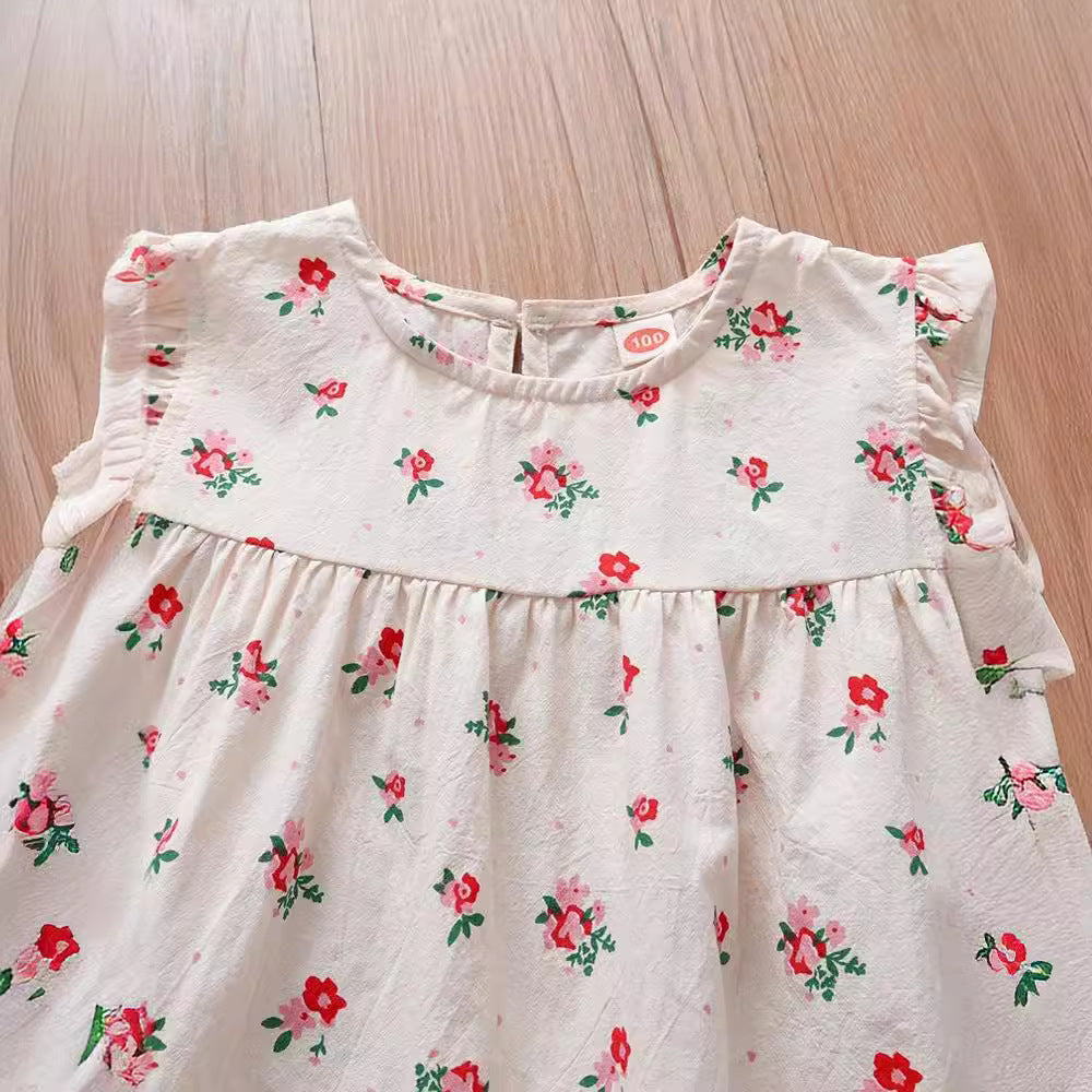 Elevate your little one’s summer wardrobe with this delicate princess dress featuring fluttering fly sleeves and a charming floral print. Designed for comfort and style, its lightweight fabric keeps your child cool while the elegant silhouette offers a timeless look perfect for special occasions or casual outings. This dress combines sweetness and sophistication, making it an enchanting choice for your child’s warm-weather adventures.