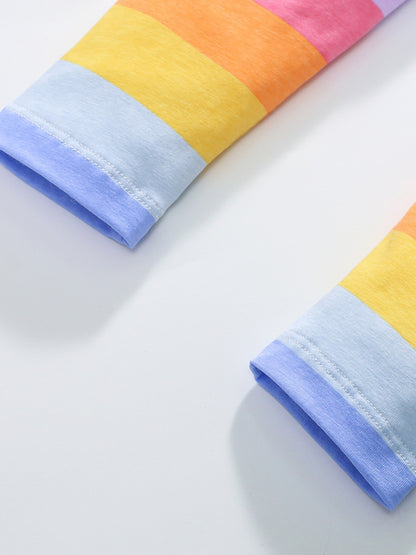 Summer Baby Kids Girls Rainbow Teddy Pattern Short Sleeves T-Shirt And Striped Pants Clothing Set