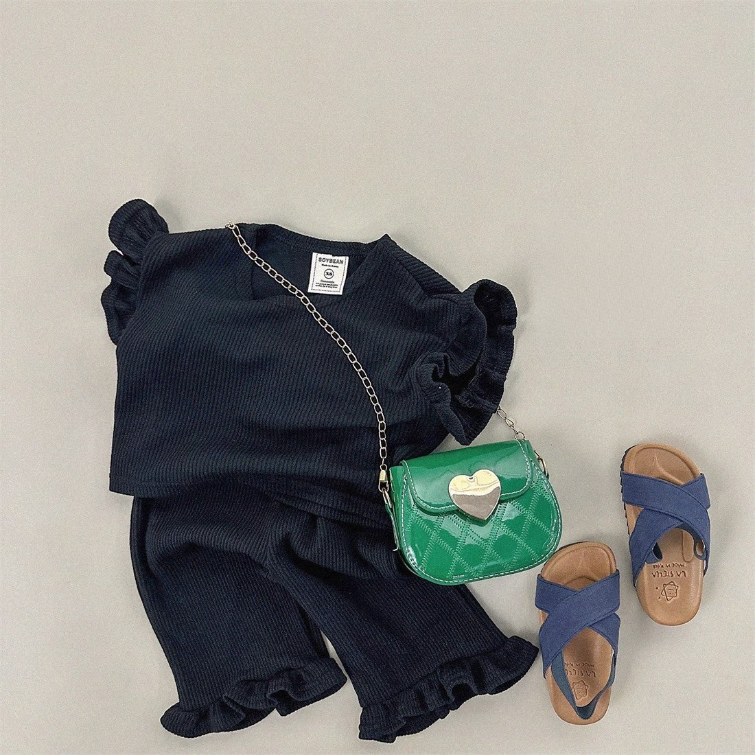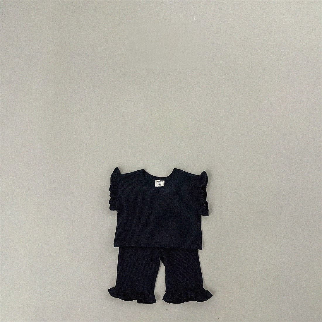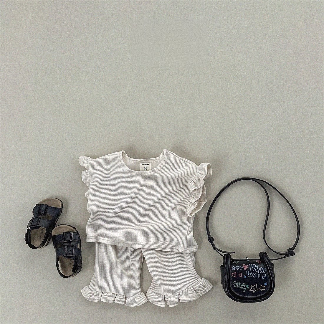This summer outfit set features a soft, solid color T-shirt with airy fly sleeves and matching pants, designed for comfort and ease of movement. Perfect for everyday play or casual outings, it keeps your little girl cool and comfortable during warm days while offering simple style that’s easy to mix and match.