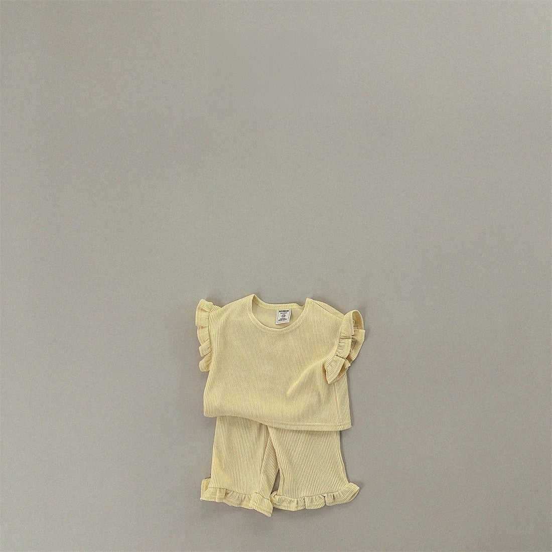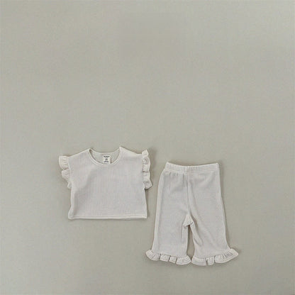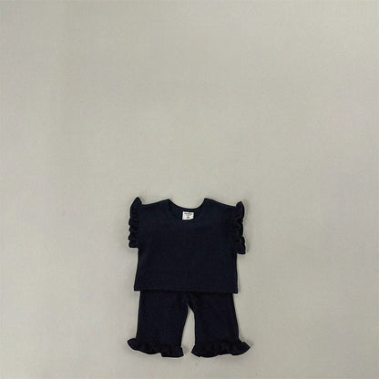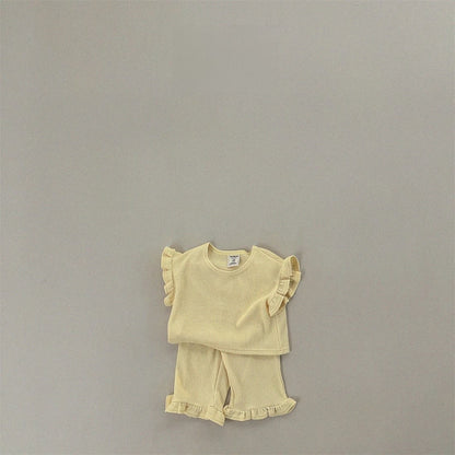 Summer Baby Kids Girls Solid Color Simple Casual Fly Sleeves T-Shirt And Pants Clothing Set