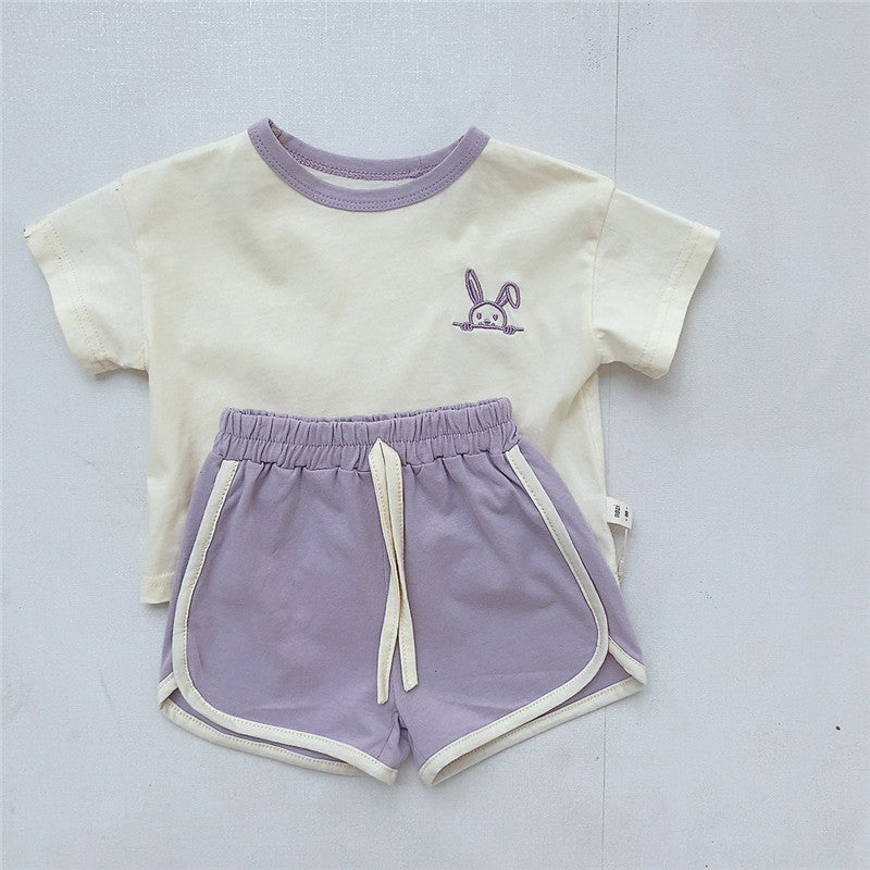 Summer Baby Kids Unisex Embroidery Logo Short Sleeves Crew Neck T-Shirt And Shorts Clothing Sets