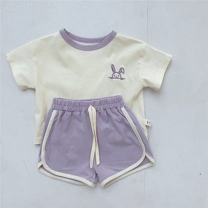 Keep your little ones cool and comfy this summer with this playful unisex set! Featuring a soft, short-sleeve crew neck T-shirt with an adorable embroidered logo and matching shorts, it's perfect for all-day adventures. Breathable fabric ensures comfort, while the cute design adds a touch of fun to every outfit. Ideal for playdates, outings, or just lounging around, this set makes summertime stylish and easy.