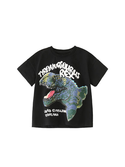 Summer Boys’ Fierce Cartoon Dinosaur Print Short Sleeves T-Shirt In European And American Style For Summer