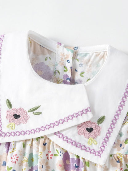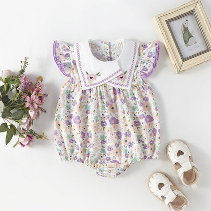 Summer Hot Selling Baby Girls Floral Pattern Fly Sleeves Embroidered Collar bodysuit