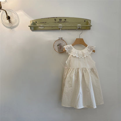 This elegant sleeveless princess dress features a delicate hollow-out collar, perfect for keeping your little one cool and stylish during warm summer days. Crafted with lightweight fabric, it offers comfort and breathability without compromising on charm. Ideal for special occasions or everyday wear, this dress combines timeless design with practicality, making it a must-have for your child's summer wardrobe.