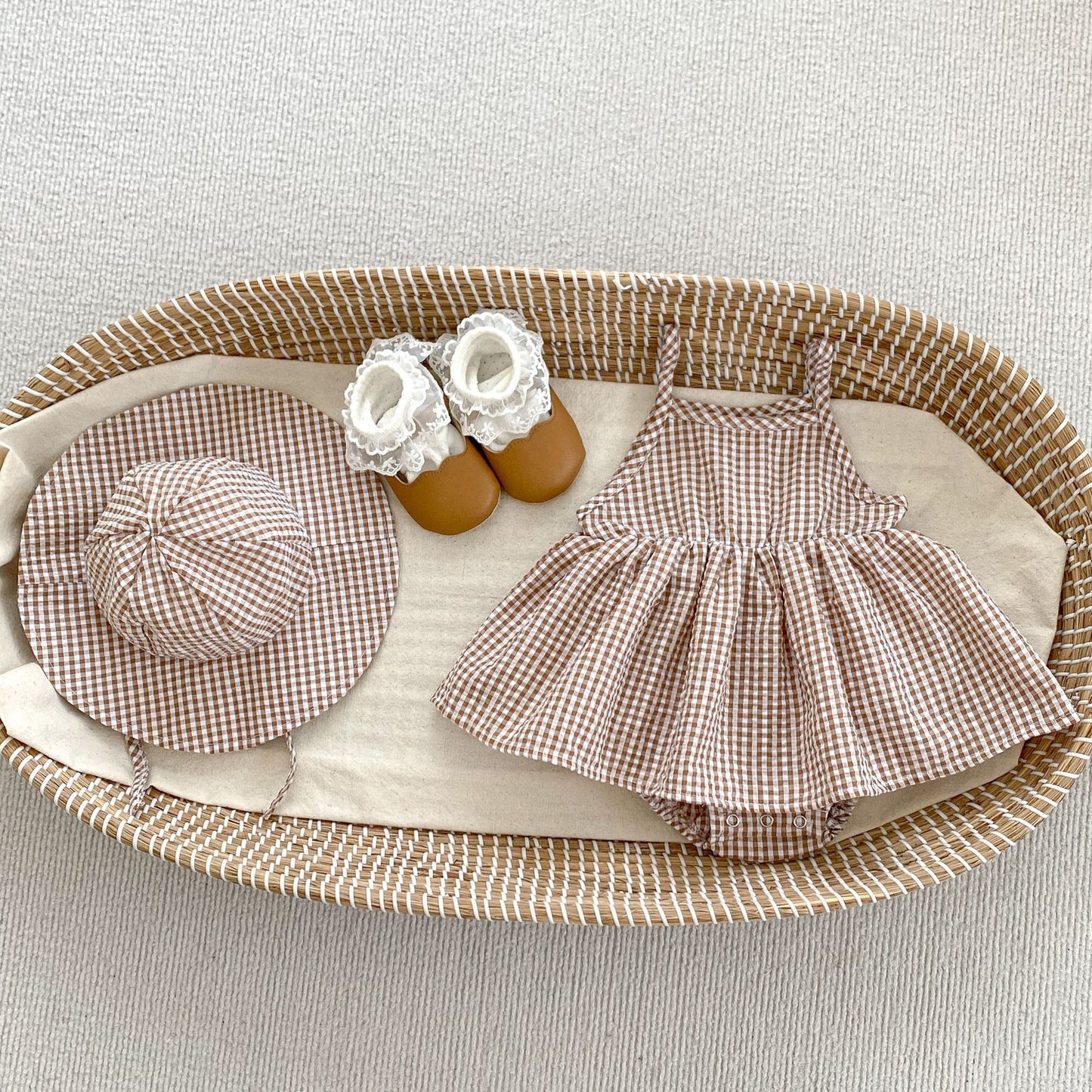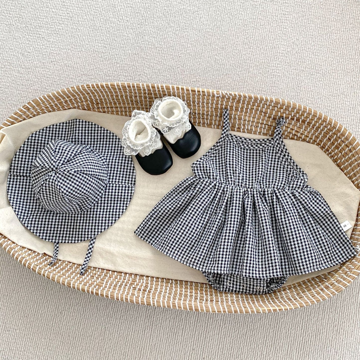 Summer Arrival Baby Girls Plaid Sleeveless Strap bodysuit Dress