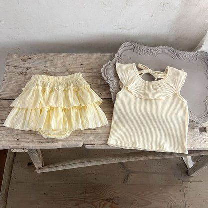 Dress your little sunshine in this adorable summer set featuring a soft sleeveless top and a charming ruffle-trim skirt. Lightweight and comfy, it's perfect for warm days filled with play and laughter. The solid colors make mixing and matching a breeze, keeping your baby girl stylish and carefree all season long.