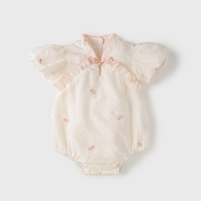 Summer Design Baby Girls Light Floral Pattern Short Sleeves Stand Collar Sweet Cute bodysuit