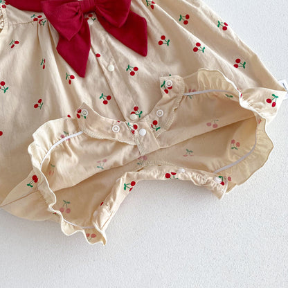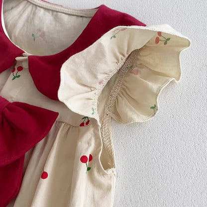 Summer Thin Arrival Baby Girls Cherry Print Fly Sleeves Peter Pan Collar bodysuit