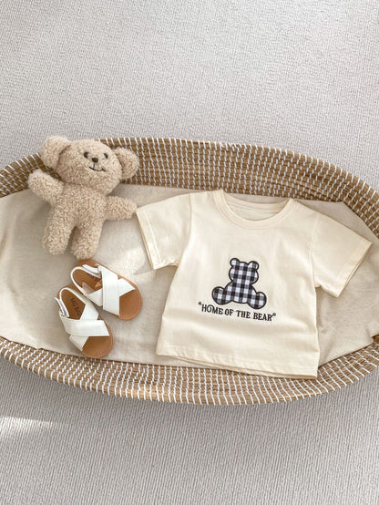 Unisex Kids’ Teddy And Letters Print T-Shirt In European And American Style For Summer