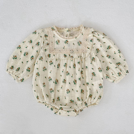 Autumn Hot Selling Baby Girls Vintage Floral Collar Long-sleeved Onesies and Dress – Princess Sister Matching Set