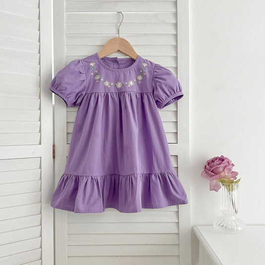 Summer Girls Arrival Floral Pattern Embroidery Crew Neck Dress – Simple Sister Matching Set