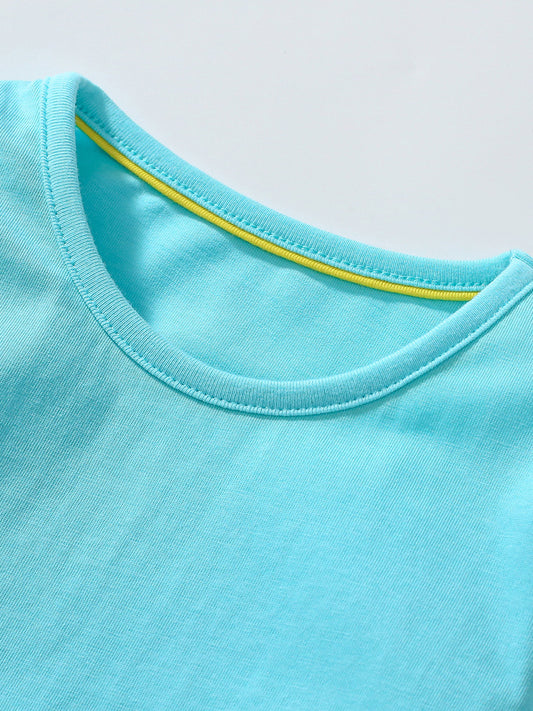 Summer Cartoon Short-sleeved Dress with Crew Neck for Stylish Girls