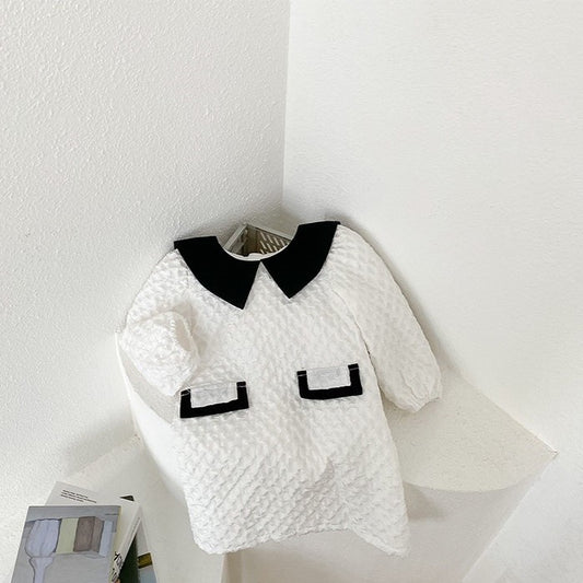 Arrival Autumn Girls French Fashion Argyle Pattern Long Sleeves Dress with Collar