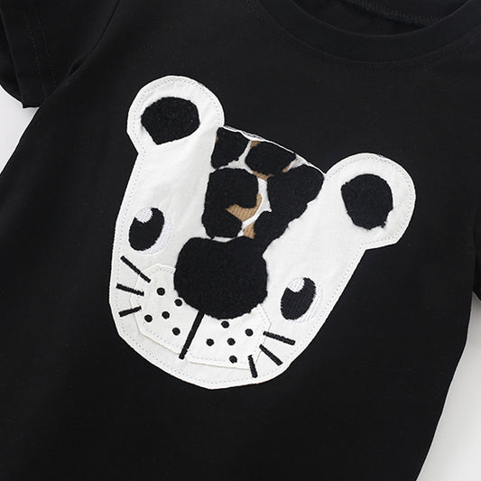 Summer Baby Kids Cartoon Animals Pattern T-shirt and Shorts Color Patchwork Clothing Set for Boys