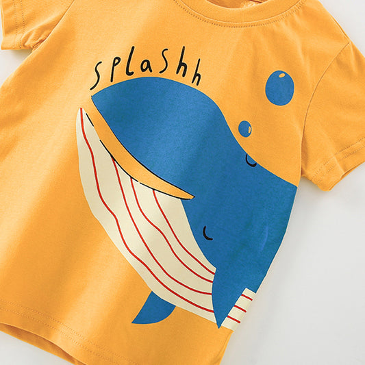 Summer Baby Kids Fish Cartoon Pattern T-shirt and Shorts Clothing Set for Boys