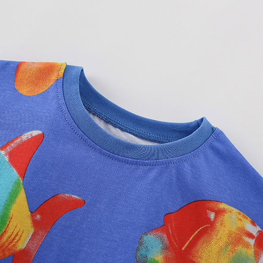 Summer Baby Kids Fish Pattern T-shirt and Shorts Clothing Set for Boys
