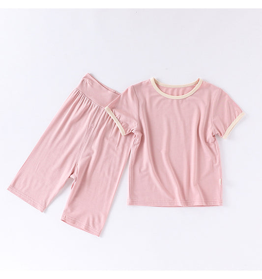 Summer Baby Kids Simple Color Patchwork Top and Plain Pants Casual Clothing Set